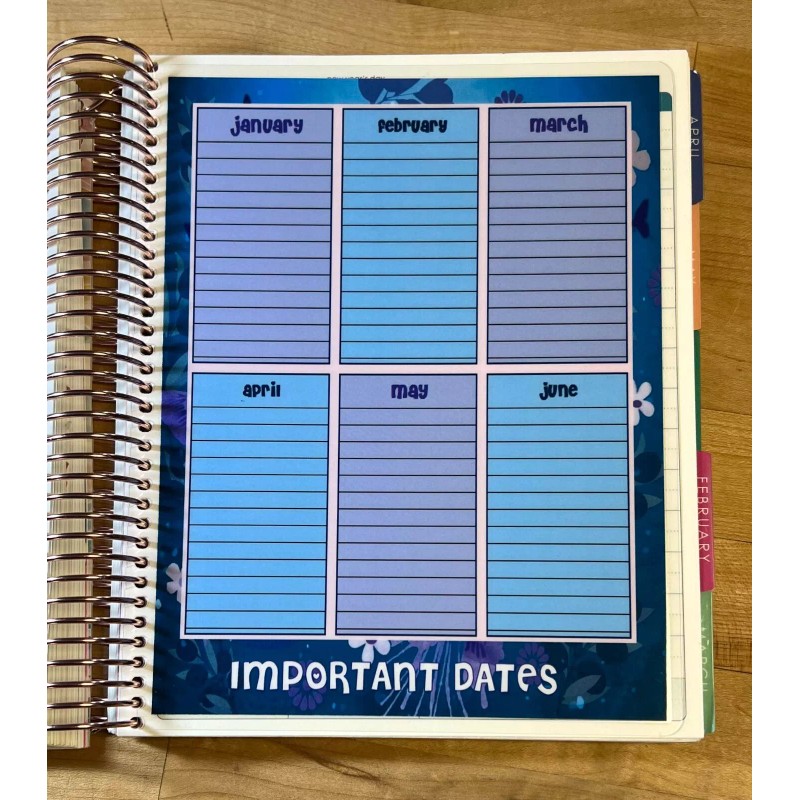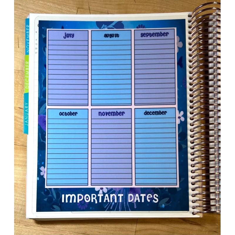 Handmade Important Dates 2 Sided Dashboard Insert for use with Erin Condren Planner-