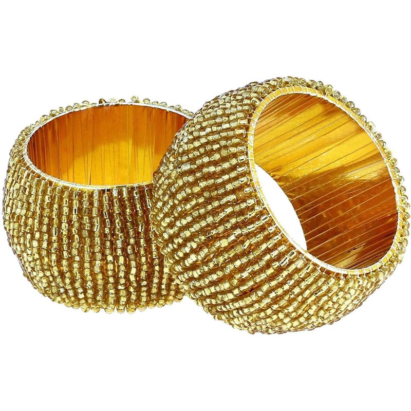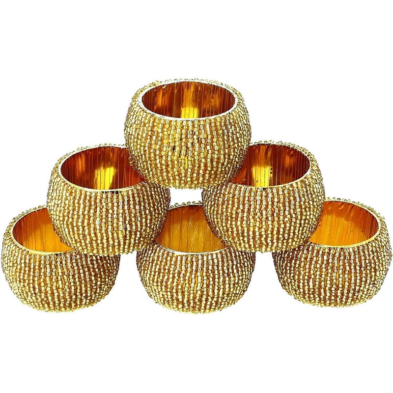 Handmade Indian Beaded Napkin Rings for Christmas, Thanksgiving, Holiday Party, Dinner Party - Napkin Holder (Gold, Set of 6)