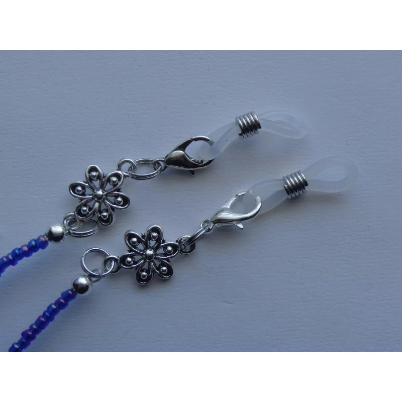 Handmade IRIDESCENT SEED BEADS FLOWERS EYEGLASSES HOLDER CHAIN NECKLACE LOBST...