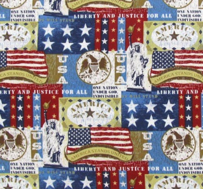 Patriotic Flag Stars & Stripes Statue of Liberty Patch Red White Blue Curtain Valance New