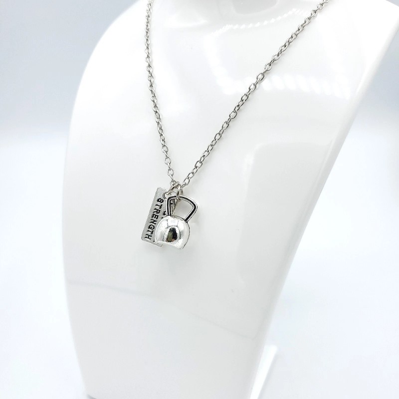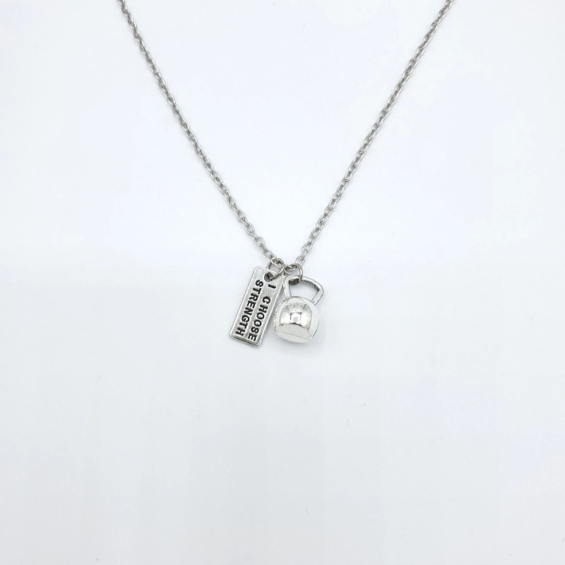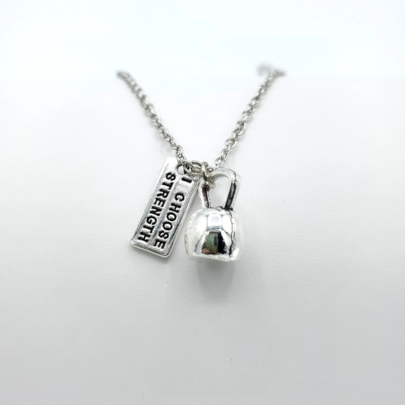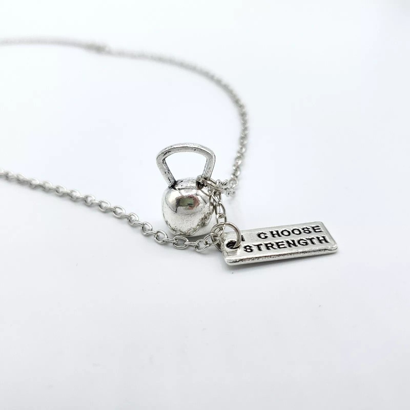 "Handmade" Kettlebell I Choose Strength SILVER Necklace Fitness Weight Training Gym Workout