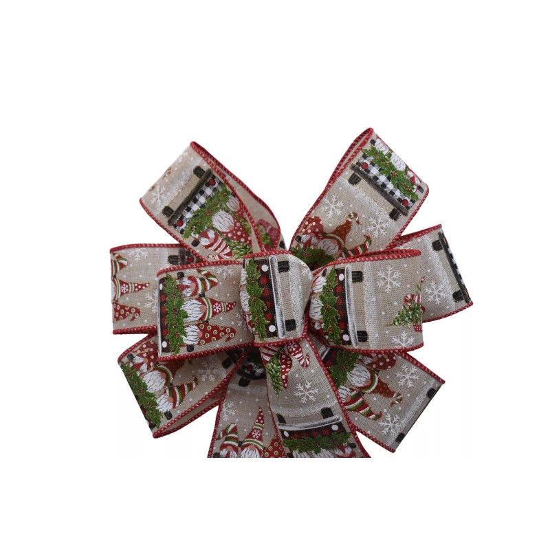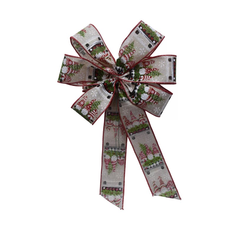 Handmade Large 10" Hand Made Wreath Bow - Wired Linen- Christmas Gnome - Holiday Red