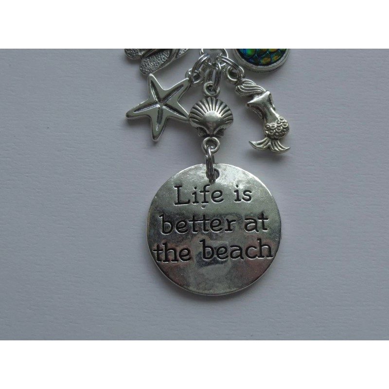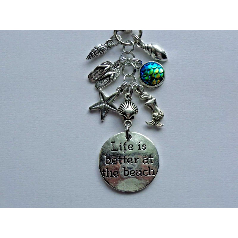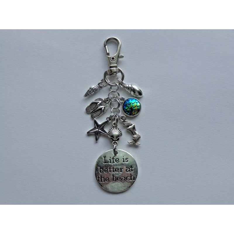 Handmade LIFE IS BETTER AT THE BEACH SEASHELLS KEY CHAIN CLIP FOR PURSE BACKPACK BAG FOB