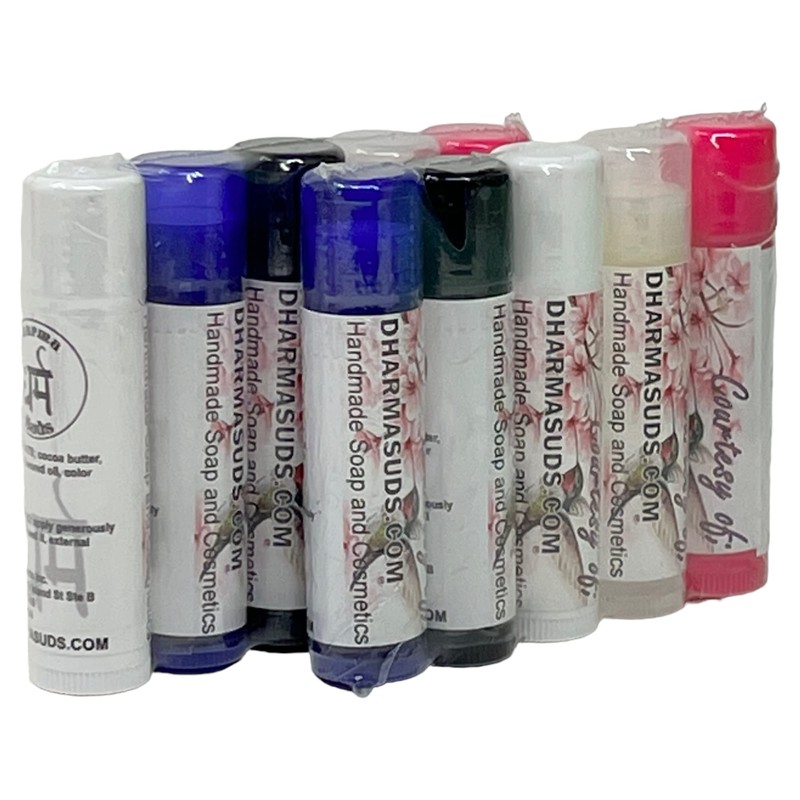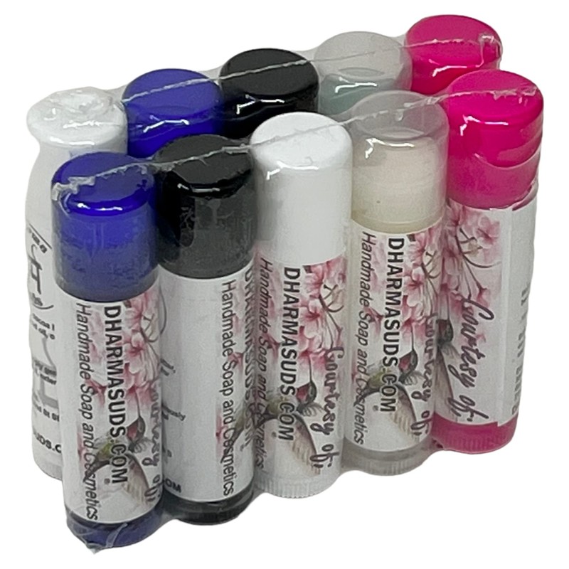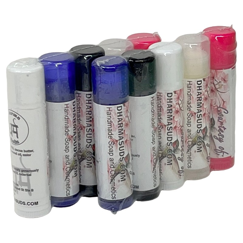 Our favorite lip balms 10-pack bundle we originally had included it as a winter gift to all our customers we included one or two pieces in each order but the customers start asking to place them for sale also so we make made them affordable 10 packs that should last for the whole winter season they are handmade with the best moisturizers and pure bees wax to moisturize your lips and avoid any winter dry lips and cracks the pack comes in assorted colors and flavors, sorry no color or flavor choices 15 oz each, they are individually sealed and labeled as gifts.