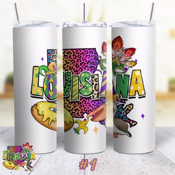 The 20 oz Sublimation Tumbler Mardi Gras is a vibrant and fun tumbler that is perfect for Mardi Gras celebrations.