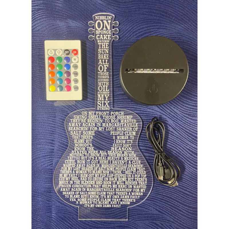 Handmade MARGARITAVILLE - Jimmy Buffet Acrylic Guitar With Lyrics Multi-Colored LED Lamp