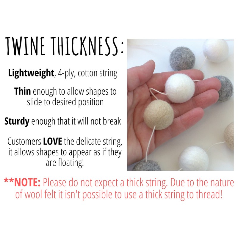 - Felt shapes are moveable on the garland with gentle pressure so you can space and arrange them however you would like. Once in place, shapes will not move on their own.