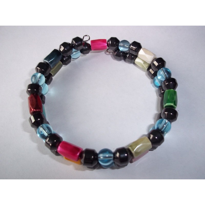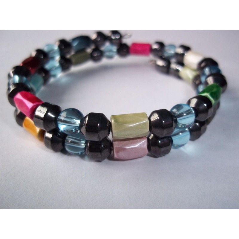 "Handmade" Multi-Color MAGNETIC & Lt Blue GLASS Bead WRAP Bracelet by Quality Jewelry A-11