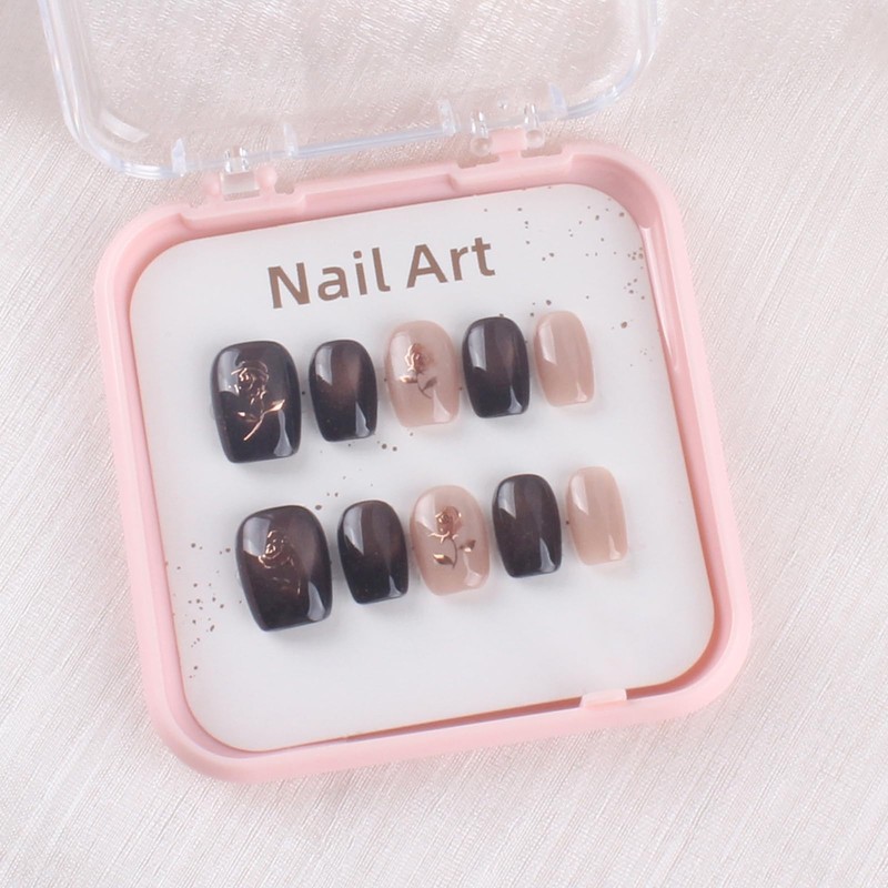 Handmade Nail Tips, Gold, Flowers, Easy and Convenient Just Stick, Manicurist Making, 10 Pieces (Rose Gold, Pink, M)