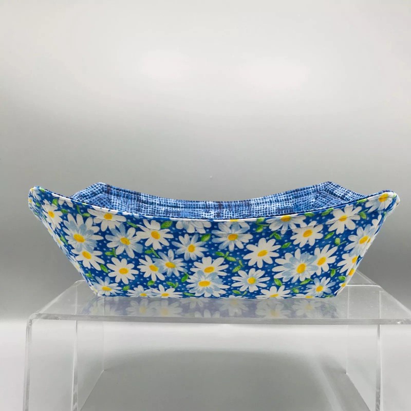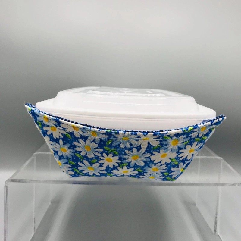 Handmade NEW! Microwave Cozy For Takeout Containers Reversible, Spring Blue Daisy
