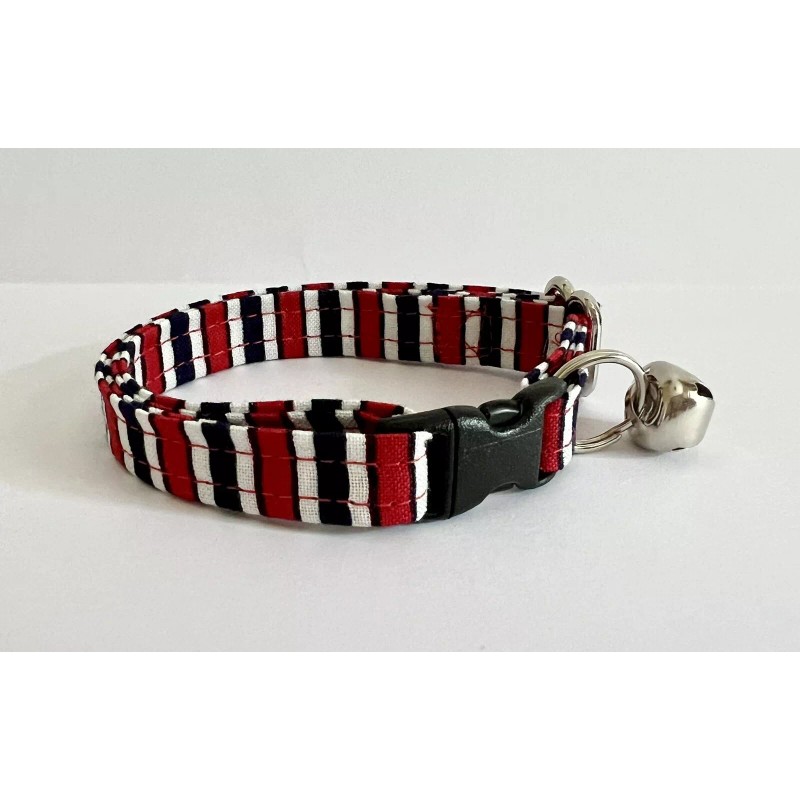 HANDMADE PATRIOTIC STRIPES AMERICA AMERICANA PRINT ADJUSTABLE BREAKAWAY CAT COLLAR
