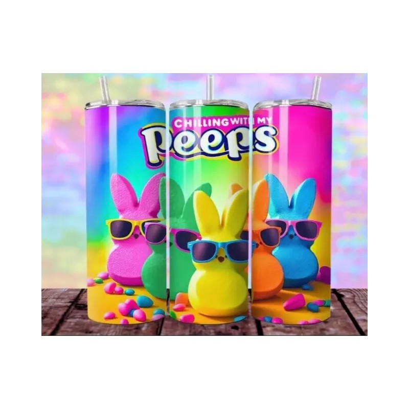 Handmade Peeps Chilling Multicolor 30oz Insulated Tumbler With Box Lid Clear Straw New