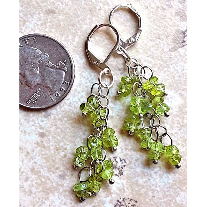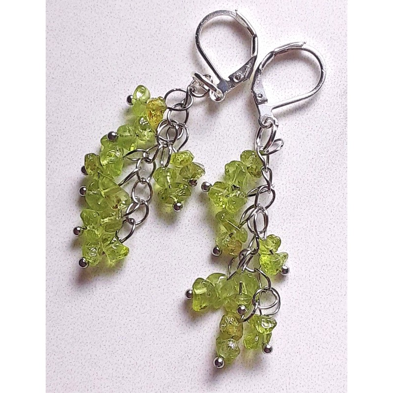 "Handmade" PERIDOT CHIPS GEMSTONE dangle earring SP LEVERBACK handcrafted WPGD18