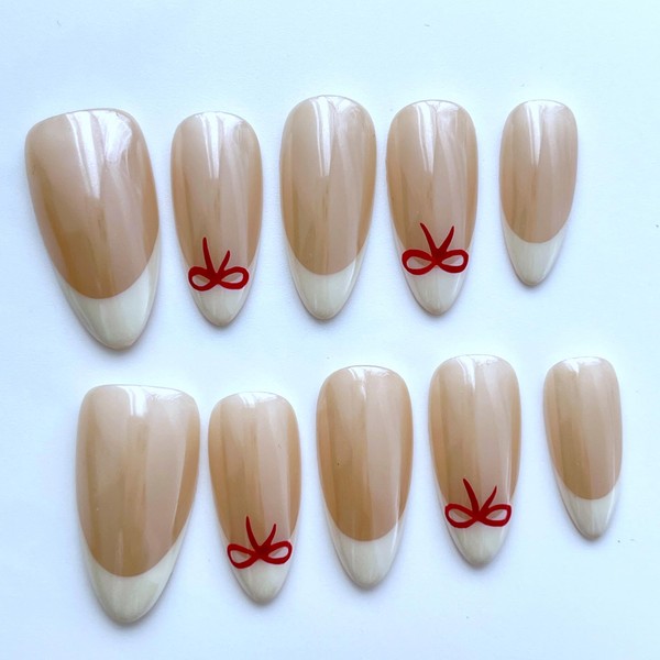 Handmade Press-On Nails, French Tip Press-On Nails, Handcrafted White Almond-Shaped Nails, Reusable Hand-Painted Design Nails, Including Tool Kit, 10 Pieces (SHN028-S, S)