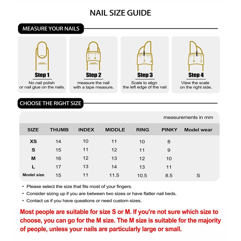 Our press on nails are made by hand. They are not the same as those made in the factory. The patterns and colors are painted by manicurists, making them more three-dimensional, sophisticated and beautiful than machine prints. These press-on nails offer a salon-quality appearance without the lengthy appointment time or high cost. This false nail is a very natural square nail, it is short and will not interfere with your daily work. They're ideal for special occasions, everyday wear, or when you need a quick nail transformation. The sets include nails in various sizes to ensure a perfect fit for every finger. These long-lasting press-on nails can be applied quickly and easily at home, giving you a professional-looking manicure in minutes.