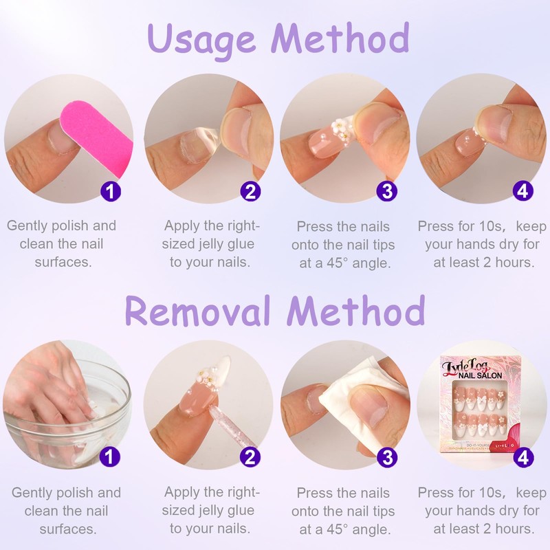 - 4. Our press-on nails provide instant, mess-free application for salon-quality results in minutes. Unlike traditional nail polish, press-on nails are designed to be reused multiple times, significantly reducing beauty waste while offering ultimate convenience. This eco-friendly wear delivers gorgeous styles without the environmental impact!