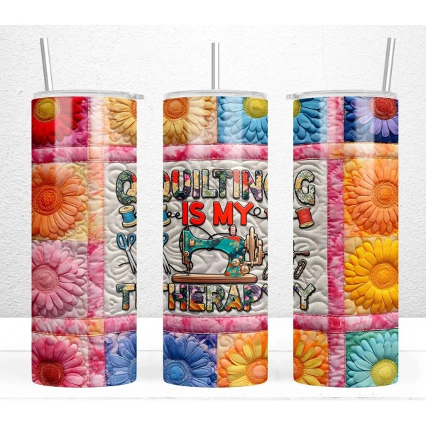 Quilting Lover Quilt Sewing Sew Stitch Craft Crafty Supplies Needle Thread 20 oz Skinny Tumbler with Straw, Travel Mug Cup Double Wall Insulated