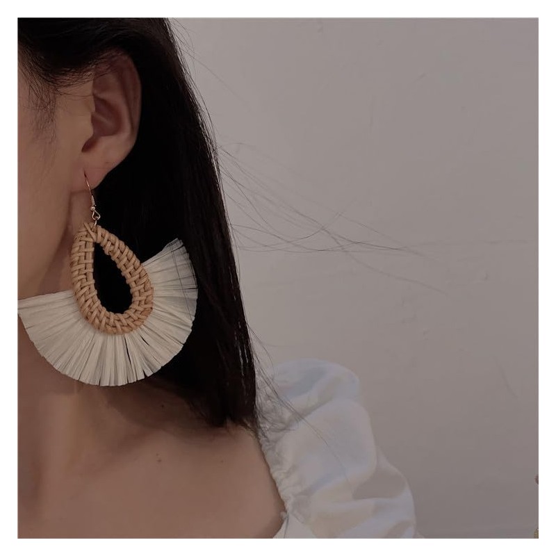 Handmade Raffia Earrings for Women Boho Summer Beach Earrings Lightweight Straw Wicker Rattan Statement Earrings