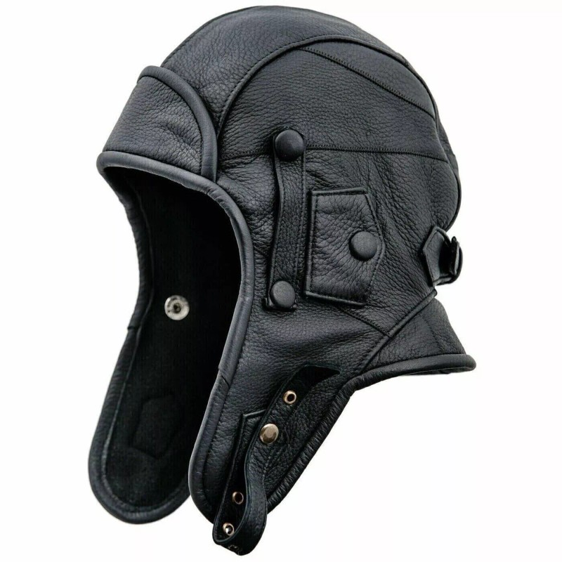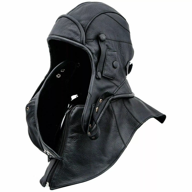 Handmade Real Leather Aviator Cap with Collar and face cover Tactical Hood Pilot Cap