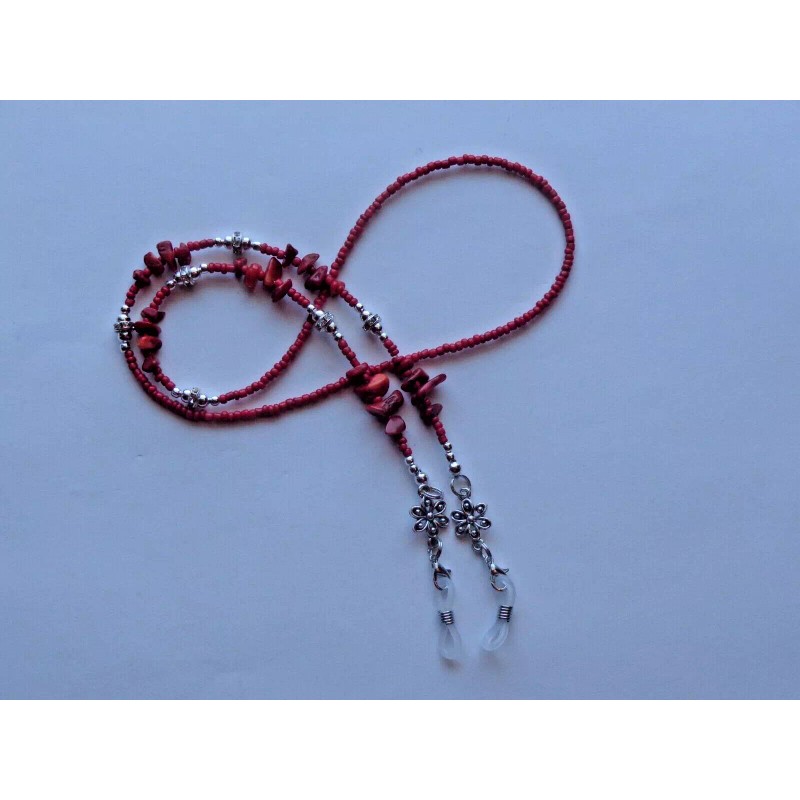 Handmade RED CORAL BEADS EYEGLASSES HOLDER READERS CHAIN NECKLACE LOBSTER CLASPS