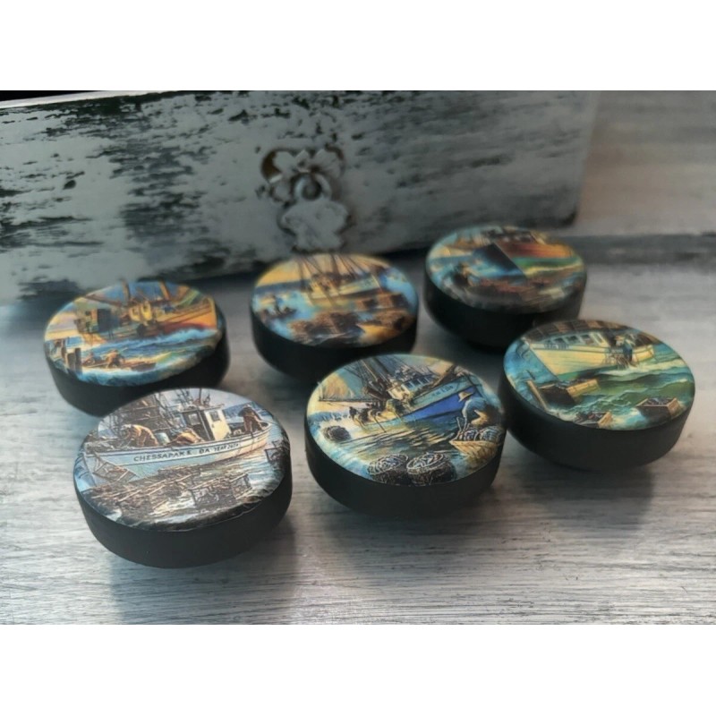 Handmade Replacement Cabinet Knobs Drawer Pulls Rustic Vintage Fishermen Boats Set Of 6