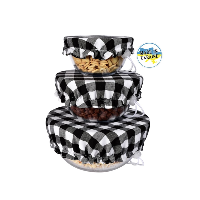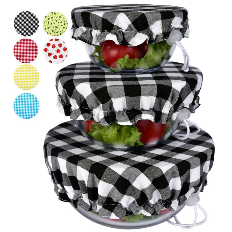 Handmade Reusable Cotton Fabric Bowl Covers - Two Layers of Fabric (Set of 3, Black plaid-2)