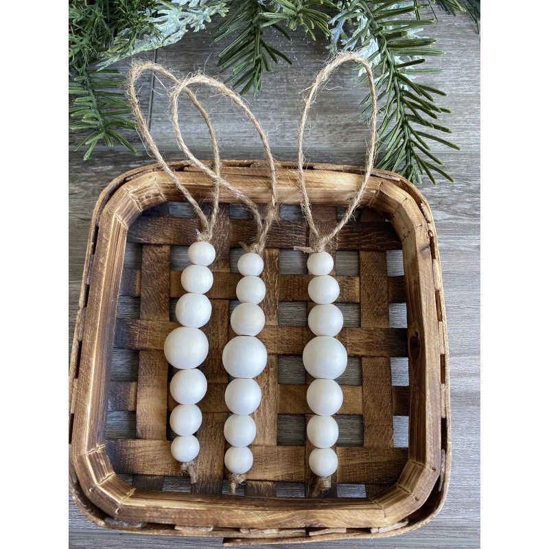 This is for a set of 3 handmade wooden bead Christmas ornaments. These are made with different sizes of wooden beads, the largest in the middle is 20mm. These are about 4” long, not including the twine hanger. These would be great on a tree, hanging on other decor such as a vase or lantern and would also make a cute package topper. No other decor items are included in this listing. Pictures just give a couple of examples on how these could be used. Shipped with USPS First Class Package. Check out my other items. I do combine shipping. First item is full price shipping. Each additional item is .50 additional shipping, with a maximum of $5.00 shipping for all items paid for in the same order! Any questions please ask. Thanks for looking!