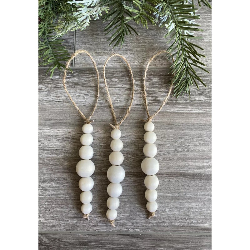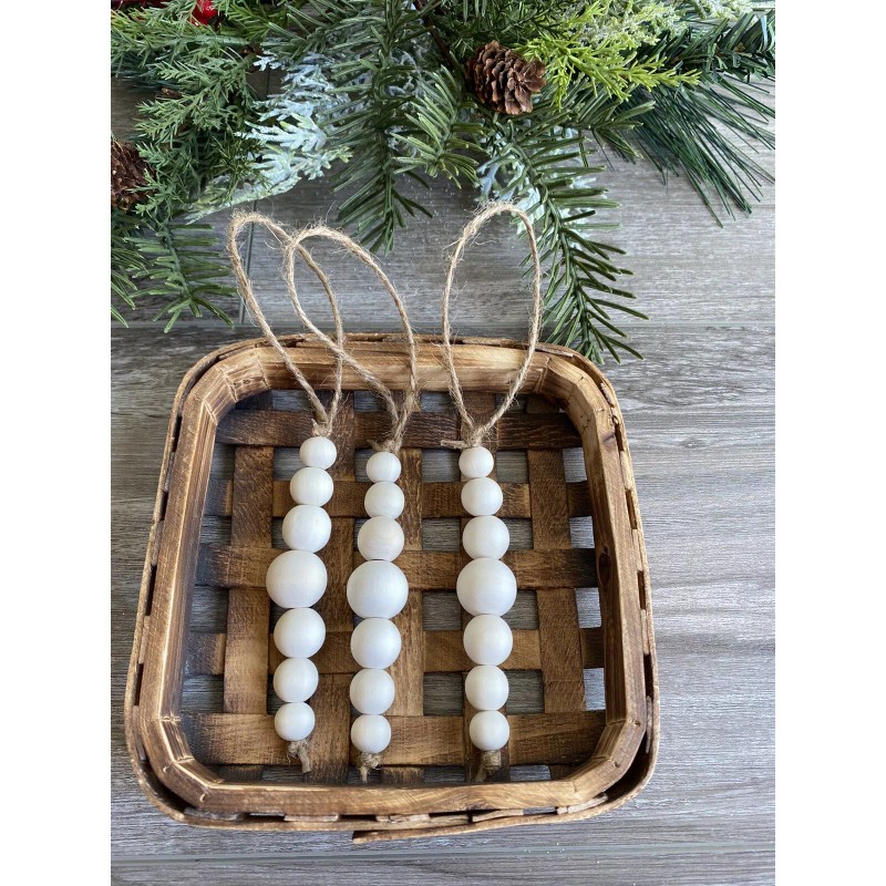 Handmade Set of 3 Natural Wood Bead Christmas Ornaments Decor
