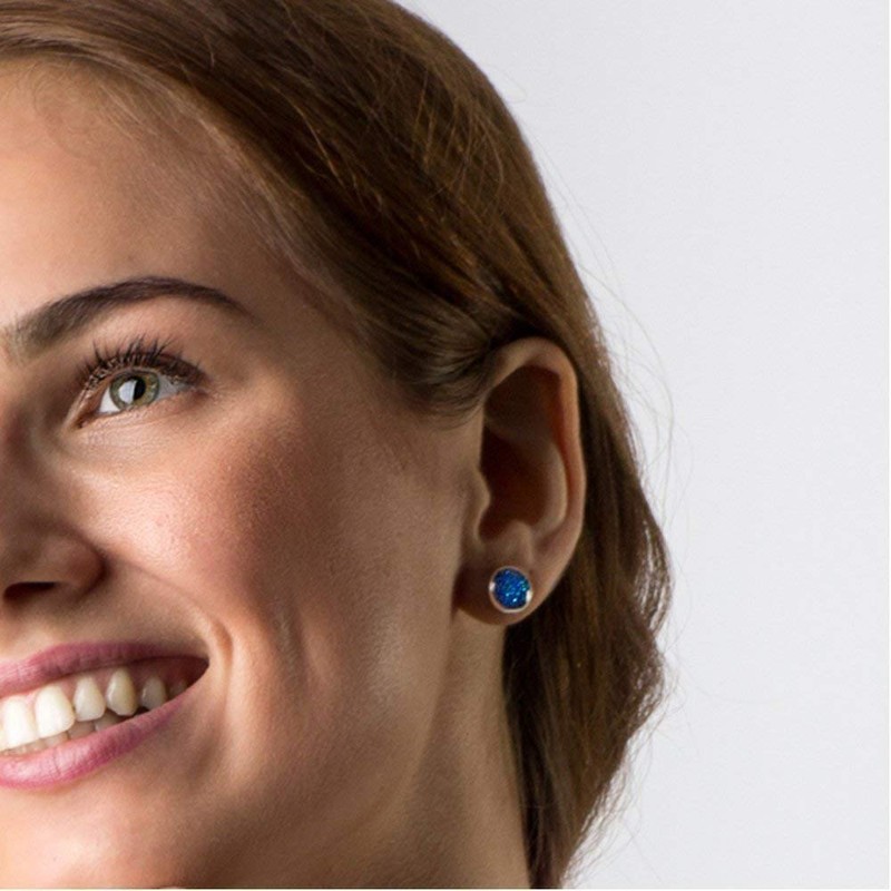 Handmade Simple Small Round Stud Earrings Jewellery for Women (Sparkly Blue Royal Silver)
