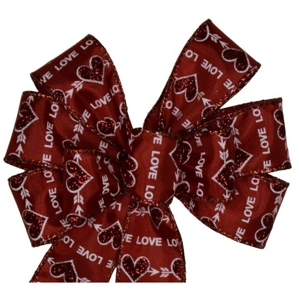 Handmade Small 5-6" Hand Made Red Glitter Hearts on Red Wired Wreath Bow Valentine's