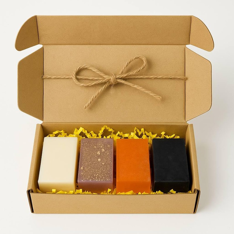 - 🧼 4 Handmade Soap Bars – 110g each 🌿 Natural ingredients: essential oils, plant extracts, goat milk, honey 🌿 Suitable for all skin types, including sensitive skin 🎁 Beautifully packaged – perfect for gifting or spa sets ❌ No SLS, no parabens, no synthetic dyes 🇺🇸 Made in San Diego, California