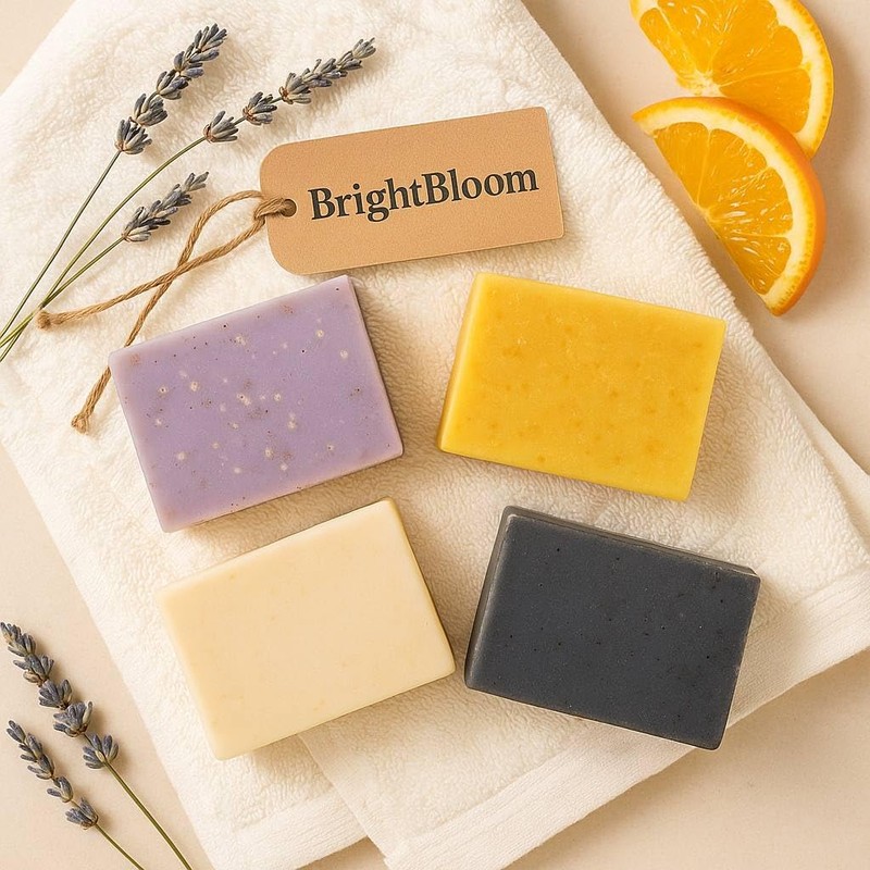 Handmade Soap Gift Set – 4 Natural Bars – Lavender, Citrus, Charcoal, Honey – Skincare Gift by BrightBloom