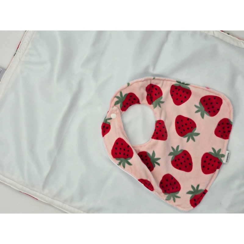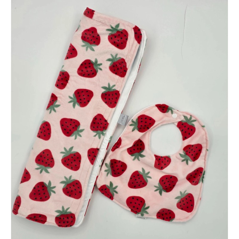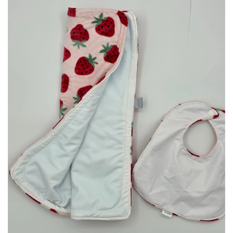 Strawberry Minky Print Kids Drool Bib and Changing Mat Set 🍓