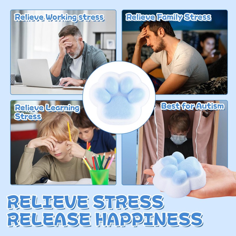 - MATERIAL: Our cute soft cat paw squeeze toy is made of premium TPR material, with a soft and comfortable touch, and it is also durable.A Choice of Creative Presents: If your friends or family members are under stress, this cat paw decompression product will be a thoughtful idea. It is both cute and practical, and can convey your care and blessings. It is suggested to play with it through the pocket.