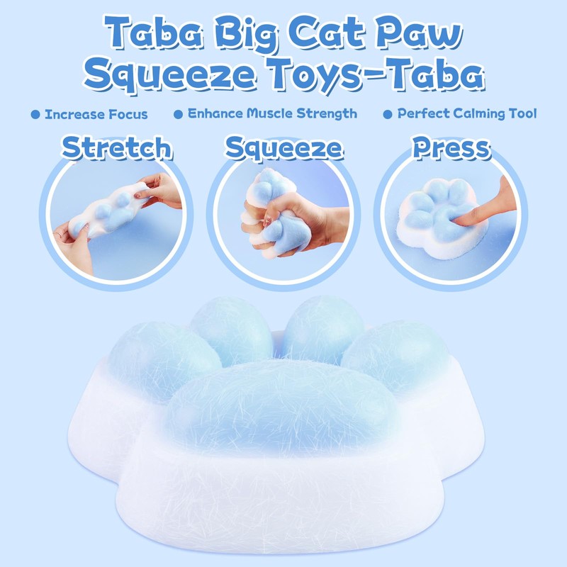 Handmade Taba Big Cat Paw Squeeze Toys, Taba Squishy Big Cat Paw Squishy Toys, Cute Soft Squeeze Toys Stress Relief Funny Fidget Toys Novelty Things Suitable for Adults Kids (Blue)