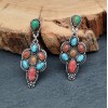 Handmade Unique Natural Multicolor Semi-Precious Stone #32 Style Post Silver Earrings