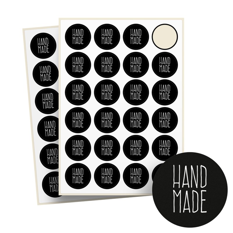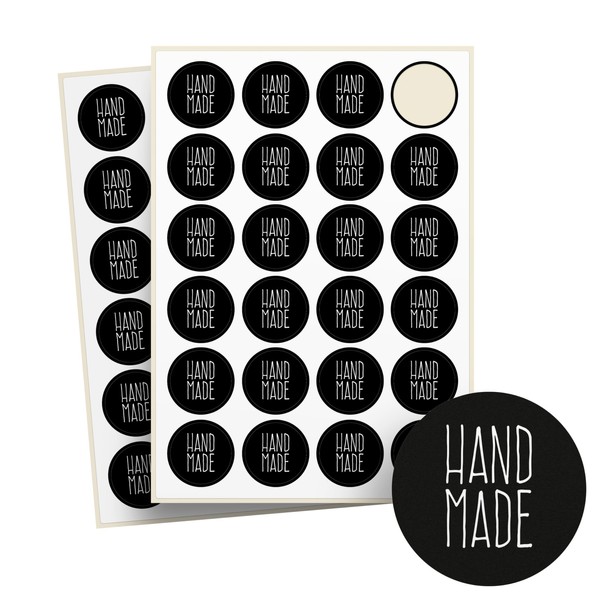 Handmade with Love Stickers, Pack of 48 on Sheet, Recycled Paper, Round, Diameter 4 cm, as Stickers or Labels for Wedding, Christmas, Handmade, Jams, Candles, Black Handmade