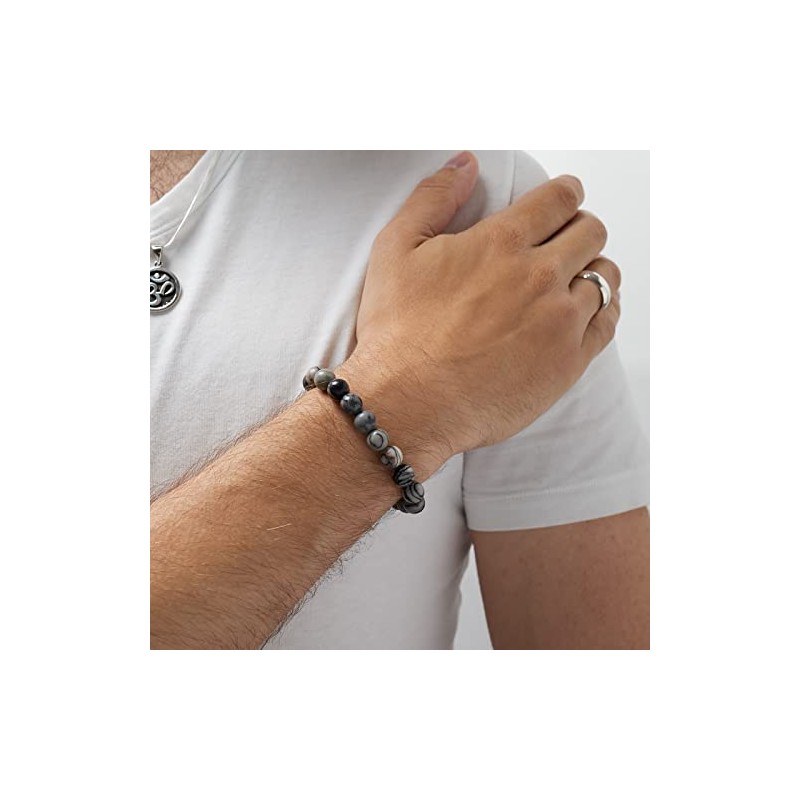 Handmade Womens Mens 8mm Edelstein Perlen Armband Elasticate | Kristall Heilung Edelstein Perlen Armband für Frauen und Mädchen (Grau)
