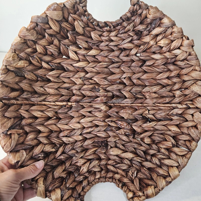 Handmade Woven Basket With Handles Shallow Fruit Bowl Display Tray 14" Round