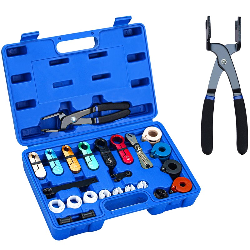 - Versatile Tool Selection: Includes 6 aluminum clip removers, 7 fuel line removers, 4 spring lock removers, 2 oil cooler line removers, a scissor-style disconnect tool, additional fuel line and AC disconnect pliers, covering all essential SAE sizes.