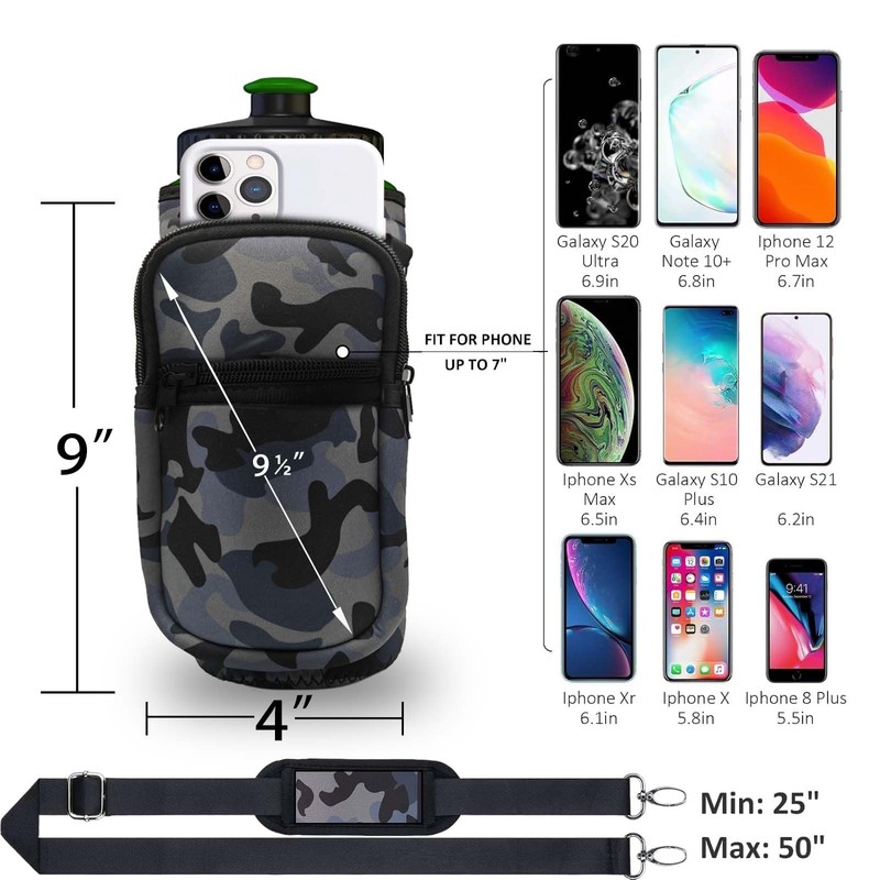 Hands-Free Camo Water Bottle Carrier Bag-Fits Owala FreeSip 24-30oz | Insulated Bottle Holder with Phone Pocket & Adjustable Strap | Crossbody Design for Gym,Hiking,Travel (Camo)