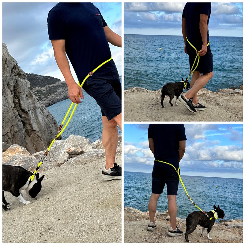 Hands Free Dog Lead. Double Ended Lead for Small Medium Large Dogs. Rope Double Dog Lead. MultiFunction Suitable for Shoulder, Waist. Made in Spain. Yellow&Cognac