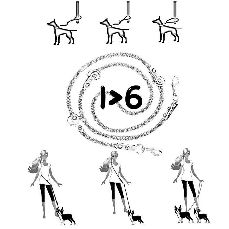 As shown in the product images, you can use this dog leash to walk two dogs at the same time, or just one dog. You can adjust the length of the leash according to the position of the metal ring on the rope, and wear it diagonally or around your waist, freeing up your hands. In addition, you can discover more functions while using it.