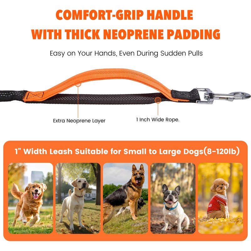 - 【Two Extra Handles for Ultimate Control】Built-in handles at both ends of the leash offer precise and comfortable control while running or guiding your dog.