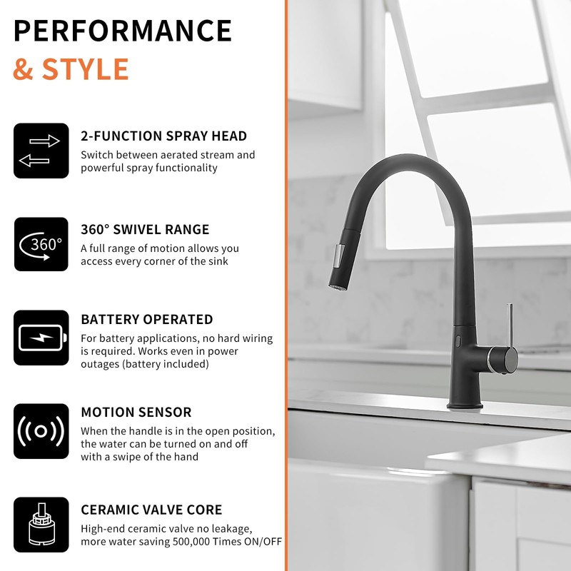 Hands-Free Touchless Black Kitchen Faucet, Smart Motion Sensor Tap with Pull Down Sprayer