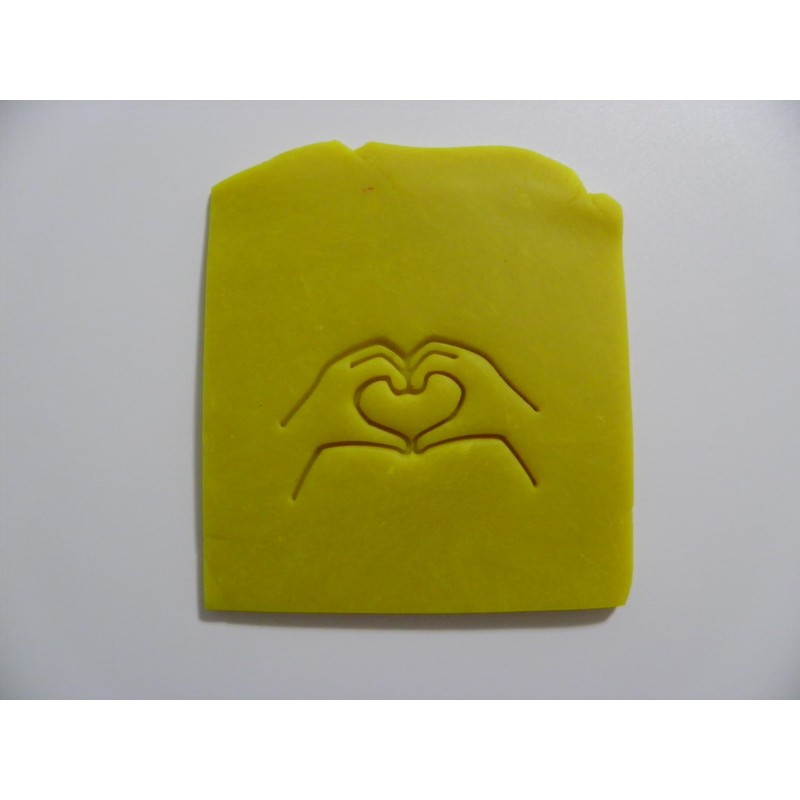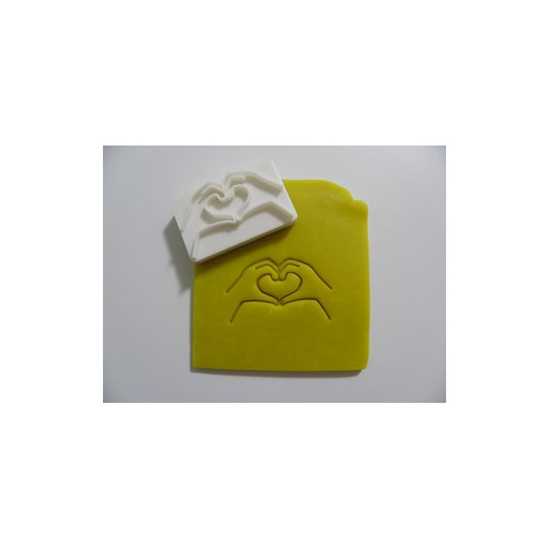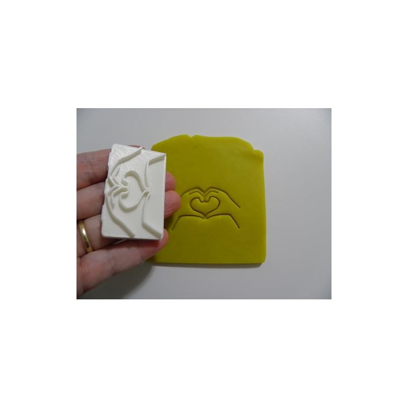 Hands into a heart stamp for many uses soap making and pottery
