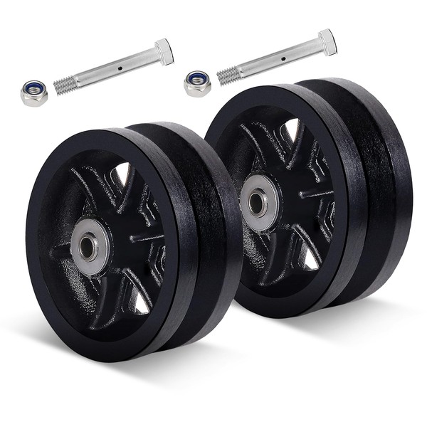 - 【Wheel Size】:The Cast Iron wheels with a diameter of 6 inches , a width of 2 inches, Hub Length 2.187. 7/8" Width of groove and 7/16" depth of groove. We have included roller bearing, ID wrench bushing,and Axle & Nut.