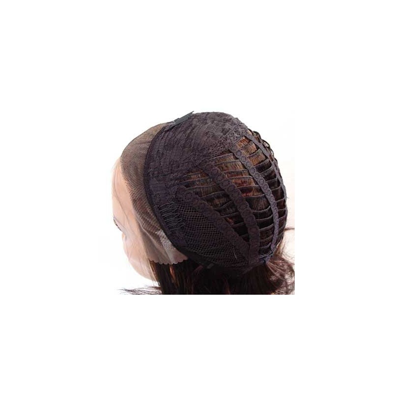 HANDSEWN SYNTHETIC FRENCH LACE FRONT FULL HAIR WIG Color Medium Brown # 3 + Auburn # 33(highlight)