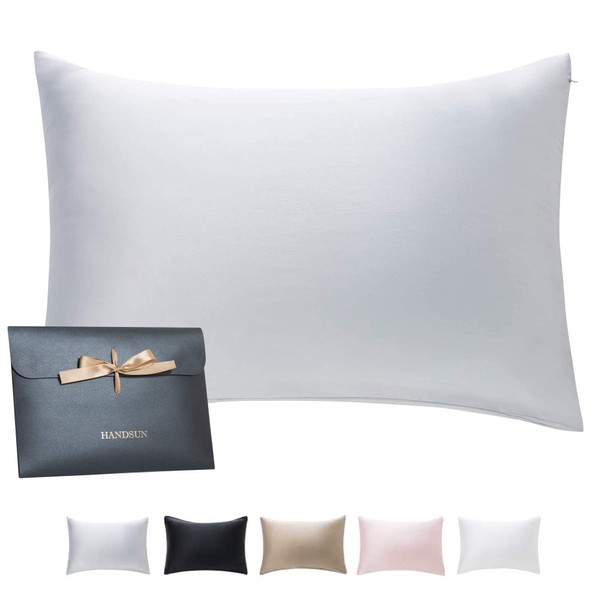 HandSun 100% Mulberry Silk Pillowcase, Breathable Silk Pillowcase for Hair and Skin, Silk King Pillow Cases with Hidden Zipper (20"x36", 1 Pack with Gift Package)