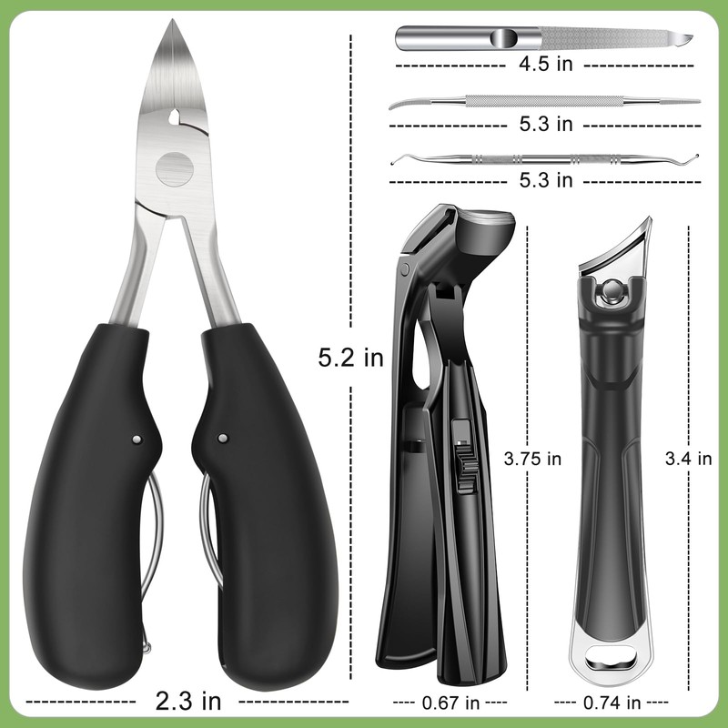 - ALL-IN-ONE NAIL CARE SET: This thick toenail clippers set is suitable for both men and women, especially beneficial for the elderly. It comes with all the essential tools to handle thick toenails, ingrown nails, and cuticles proficiently. This nail cutter set is easy to use at home, bringing professional - grade results without costly salon visits. This set is not only a practical choice for your daily nail care routine but also a thoughtful gift for your family and friends.